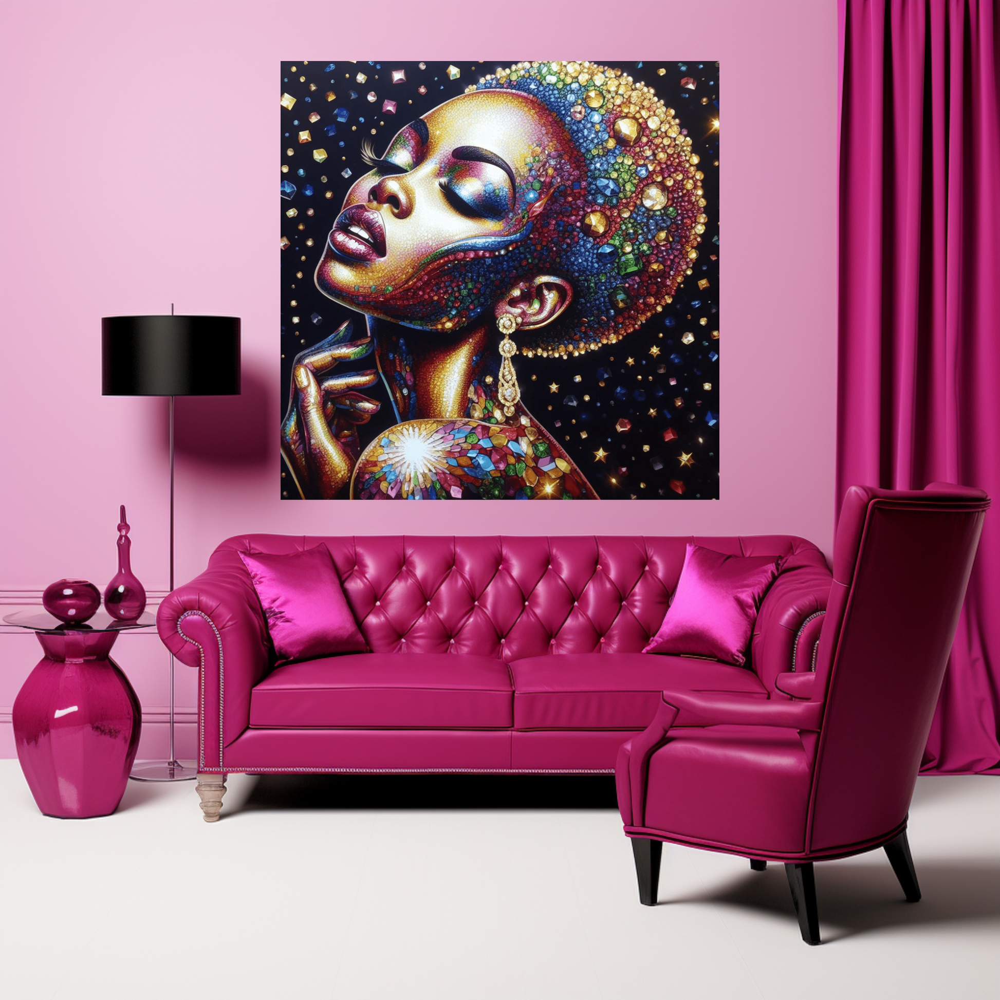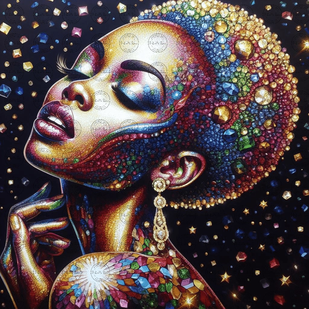 Digital Art - Crystal Radiance: An Urban Fairy Tale #2013 Crystal Radiance: An Urban Fairy Tale is a mesmerizing digital artwork that blends traditional African aesthetics with a fantastical urban narrative. This piece features a woman whose form is intricately composed of shimmering crystals, embodying the vibrancy and resilience of the African spirit. Her pose and expression are crafted to exude elegance and emotive depth, bringing forth a story of grace amidst the concrete jungle. The urban setting forms a stark but harmonious backdrop, with elements of a modern fairy tale woven through the scene. Skyscrapers blend with mythical motifs, creating a dreamscape where reality and fantasy intersect. Each crystal that forms the woman's figure catches the light differently, casting a kaleidoscope of colors that dance across the canvas. The fine details in her attire and surroundings are a testament to the highly detailed illustration style, which aims to capture not just the visual splendor, but also the soulful essence of its subject. This piece is a celebration of cultural heritage and contemporary imagination, making it a captivating addition to any collection of digital art. It speaks to the heart of those who find beauty in diversity and strength in the fusion of the old and the new. "Crystal Radiance" is more than just a visual treat; it's a journey into a world where every detail tells a part of a larger, enchanting story. You will receive one upscaled high quality PNG file that can be used for various projects.