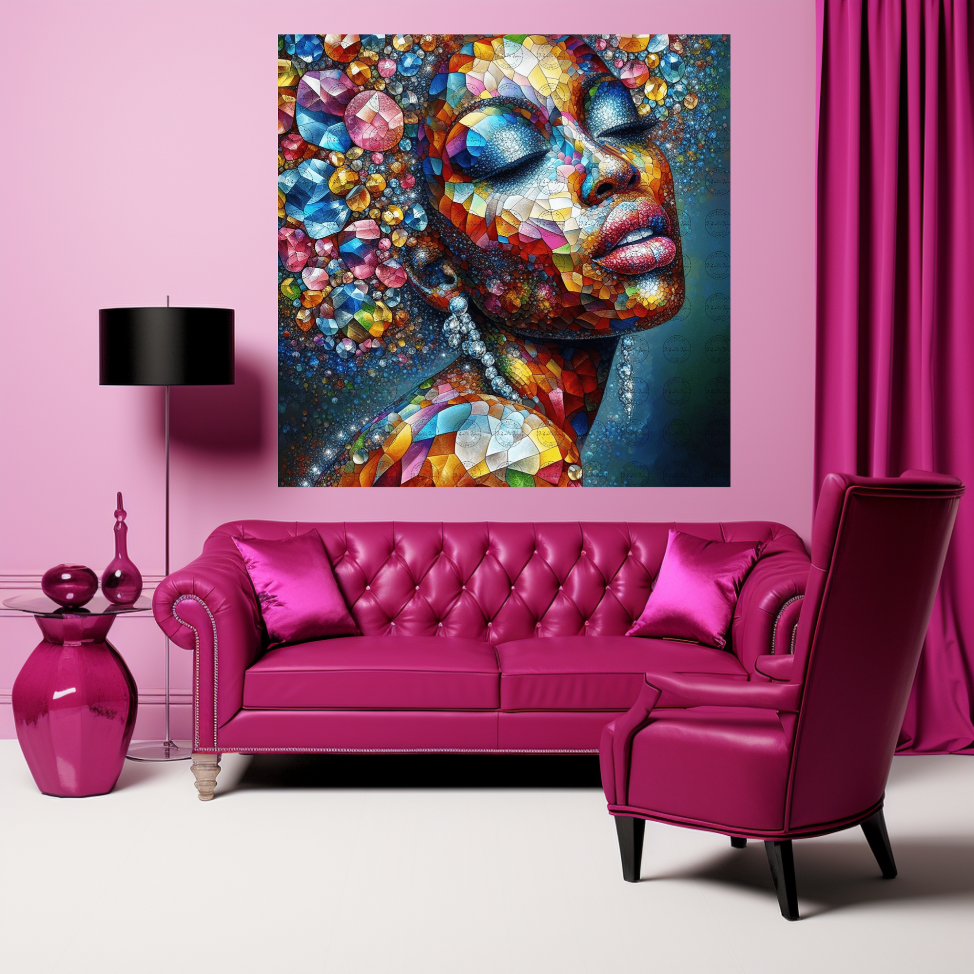 Digital Art - Crystal Radiance: An Urban Fairy Tale #2016 Crystal Radiance: An Urban Fairy Tale is a mesmerizing digital artwork that blends traditional African aesthetics with a fantastical urban narrative. This piece features a woman whose form is intricately composed of shimmering crystals, embodying the vibrancy and resilience of the African spirit. Her pose and expression are crafted to exude elegance and emotive depth, bringing forth a story of grace amidst the concrete jungle. The urban setting forms a stark but harmonious backdrop, with elements of a modern fairy tale woven through the scene. Skyscrapers blend with mythical motifs, creating a dreamscape where reality and fantasy intersect. Each crystal that forms the woman's figure catches the light differently, casting a kaleidoscope of colors that dance across the canvas. The fine details in her attire and surroundings are a testament to the highly detailed illustration style, which aims to capture not just the visual splendor, but also the soulful essence of its subject. This piece is a celebration of cultural heritage and contemporary imagination, making it a captivating addition to any collection of digital art. It speaks to the heart of those who find beauty in diversity and strength in the fusion of the old and the new. "Crystal Radiance" is more than just a visual treat; it's a journey into a world where every detail tells a part of a larger, enchanting story. You will receive one upscaled high quality PNG file that can be used for various projects.