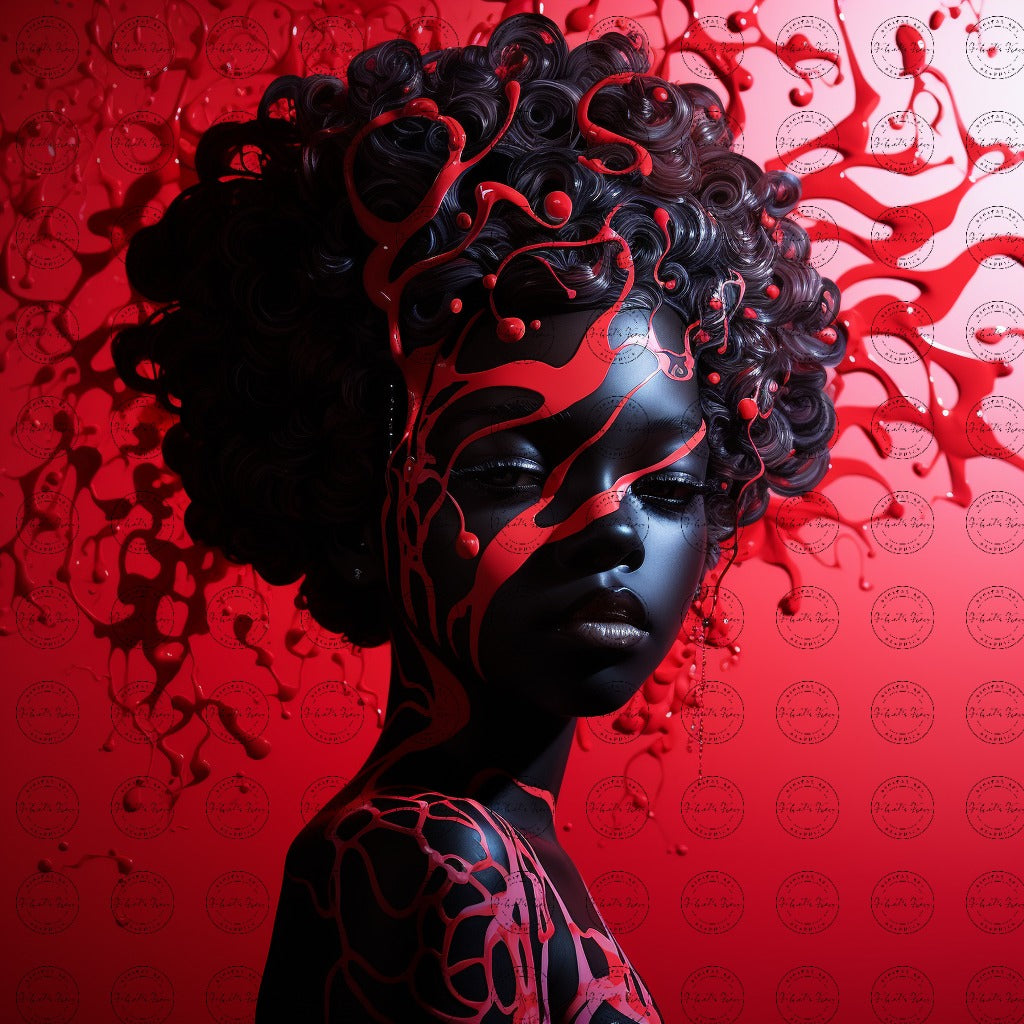 Digital Art - Ethereal Harmony: A Silhouette of Little Black Girl - #2017 "Ethereal Harmony" is a mesmerizing digital artwork by Gregoire Guillemin that seamlessly blends the beauty of traditional puffy paint painting with a contemporary silhouette aesthetic. In this artwork, a little black girl is depicted in a silhouette against a background inspired by vaporwave aesthetics. The silhouette is meticulously crafted with micro-details, capturing the innocence and wonder in her expression. The studio lighting accentuates the subtle curves of her face and the intricate details of her hair, adding depth to the artwork. The use of red hues creates a striking contrast against the vaporwave background, symbolizing passion and strength. Inspired by the iconic style of "The Tree of Life" film and the vibrant aesthetics of the Persona 5 video game, this artwork combines elements of cinematic storytelling and video game artistry. The composition exudes a sense of mystery and adventure, inviting viewers to delve into the girl's world and explore the depths of her imagination. Version 5.2 of this artwork signifies the evolution of Guillemin's artistic vision, incorporating new techniques and styles. "Ethereal Harmony" invites viewers to contemplate the intersection of innocence and strength, tradition and modernity, in a visually stunning and emotionally resonant masterpiece. You will receive one upscaled high quality PNG file that can be used for various projects. You will receive one upscaled high quality PNG file that can be used for various projects.