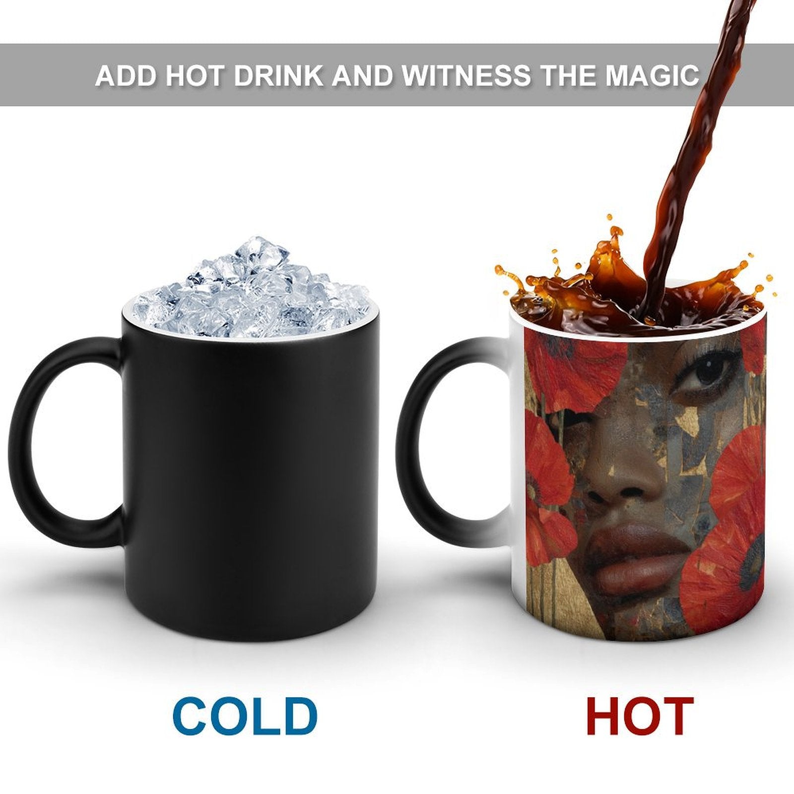 • Thermal Change: When our cup is empty or filled with cold liquid, there will be no change in the cup. However, when you pour hot liquid with a temperature exceeding 60°, you will see your customized pattern appear within seconds. It is suitable for coffee, tea, water, and all beverages, making it an interesting magic cup that brings joy to daily life.