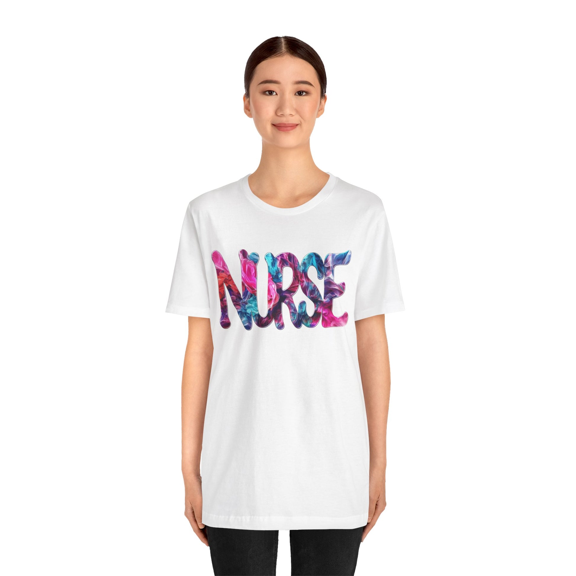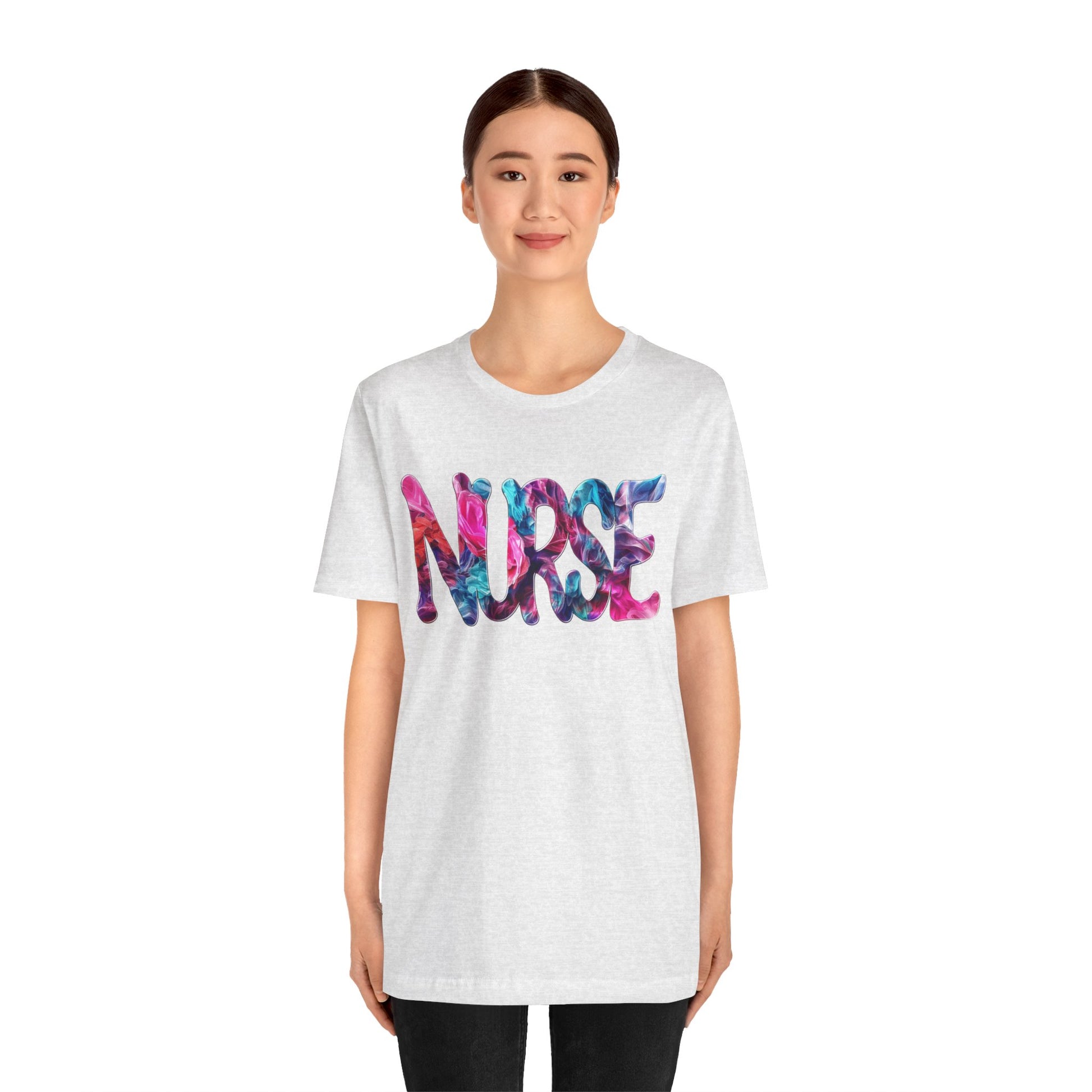 Celebrate the heroes in healthcare with our 'Vibrant Nurse' T-shirt! Adorned with a fluid, colorful design, the word 'NURSE' stands out in a splash of rich, mesmerizing hues. This shirt is a tribute to the passion and diversity of the nursing profession. Made with soft, breathable fabric, it's perfect for long shifts or just showing off your nurse pride in style. A great gift for the life-saving nurse in your life! #NursePride #HealthcareHeroes #NurseLife #ColorfulComfort